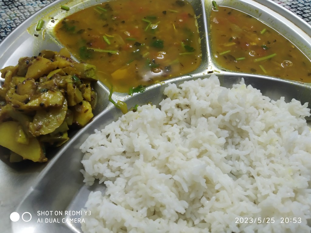 We feel arhar dal goes well with roti and rice and a dry vegetable.