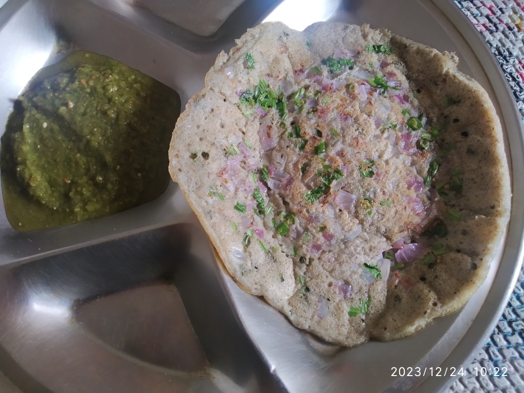 To make Uttapam batter, you must soak urad dal overnight. We used urad dad with skin.