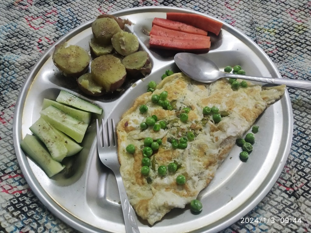 Today’s breakfast was boiled sweet potatoes and omlette. It is good to keep you full till afternoon.