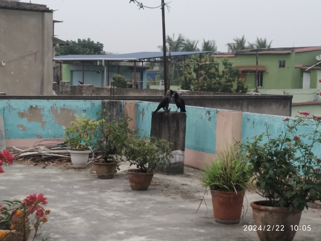 Suddenly I noticed the crows landing on the walls of the roof. They were having an assembly meeting. In the centre one crow thrashed the other crow. I drove them away to occupy my seat. While they left in anger few were still there.