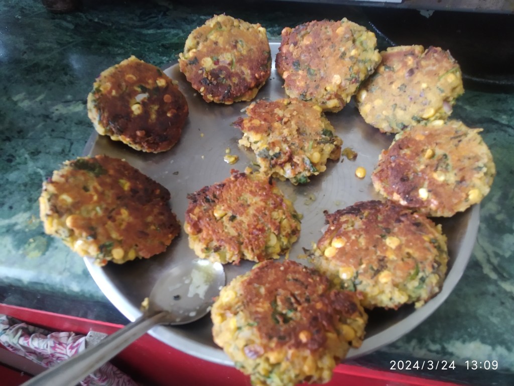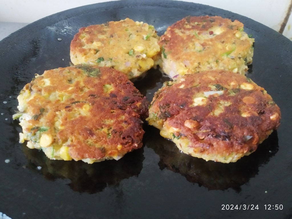 Then heat oil on a flat pan and make round shaped paties and place them on the pan.