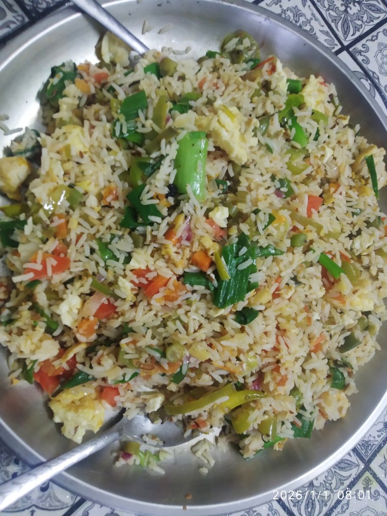 Instead of making ugly faces appear beautiful, people should work on their talent. That’s what makes them special and respectful. The perfect egg-chicken fried rice that my spouse produced.