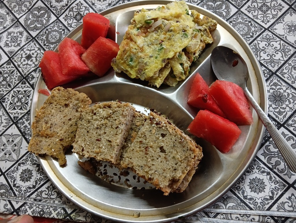 My breakfasts are heavy and varied consisting of fruits, protein, cereals and tea as beverage.