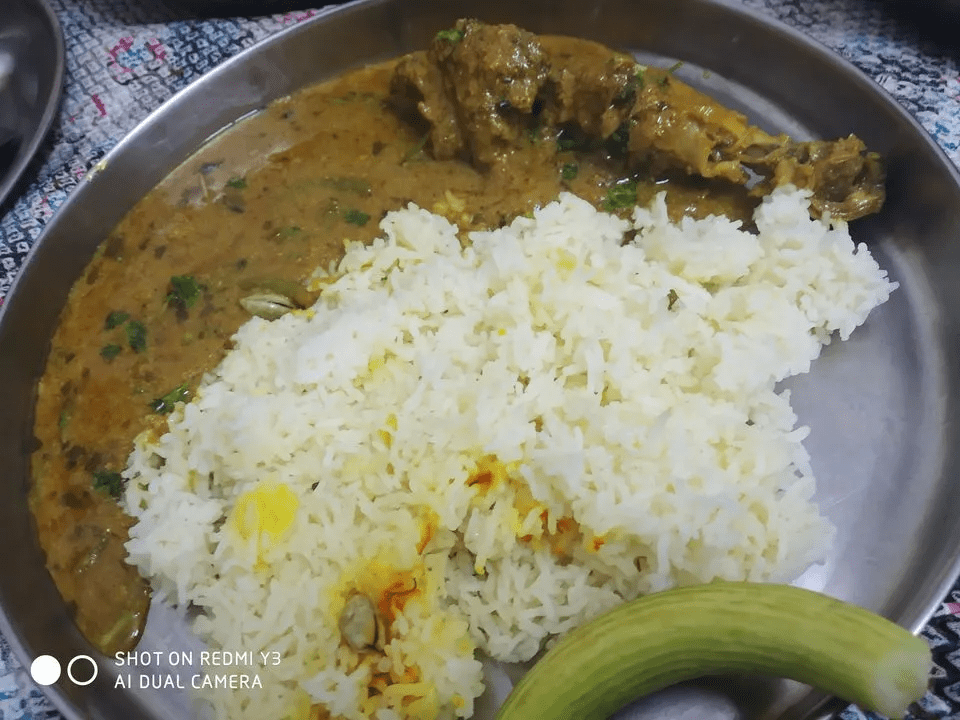Chicken is fried in oil first with salt only. Then prepare the gravy. Heat oil in a pan. Add sliced onion. Then add a paste of ginger-garlic, red chillies and tomatoes. Cook until the oil separates. Add the chicken and cook for some time and then add a little bit of fresh curd and cook for sometime and finally add water and some salt to your taste. Cover and cook. Finally add some garam masala powder and chicken masala powder and cook for 10 minutes until the gravy thickens with oil floating on top.